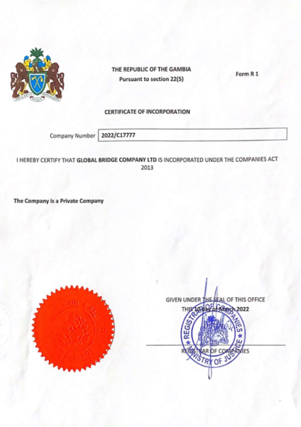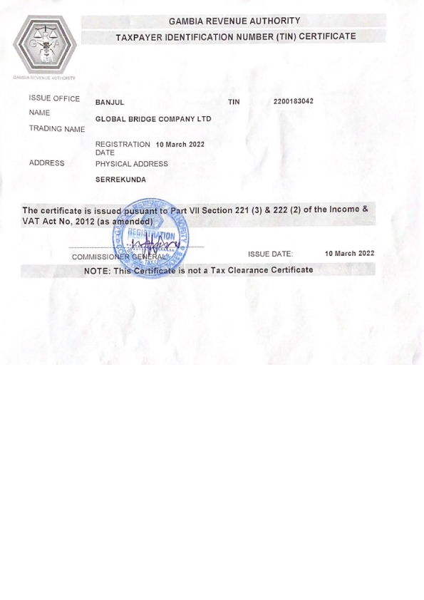 Taxpayer Identification Certificate - The Gambia